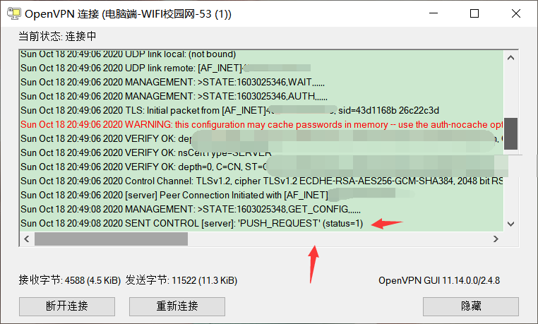 - PC端链接时一直显示 "PUSH_REQUEST' (status=1)"